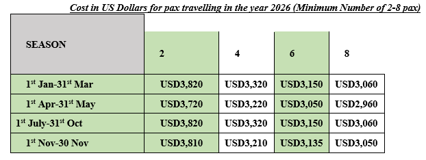 - • Private game drives as per the itinerary
